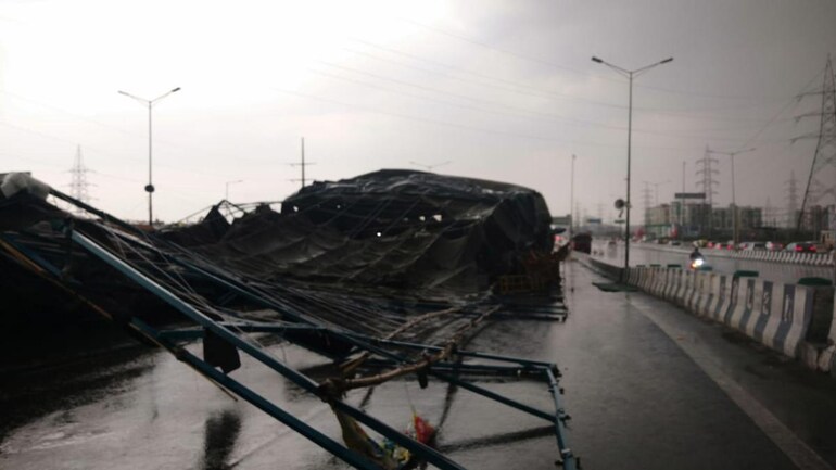 The weather suddenly changed as dusty winds and rain hit several parts of Delhi, causing uprooting of trees and inconvenience for farmers who have been protesting at the borders of Delhi for over six months.