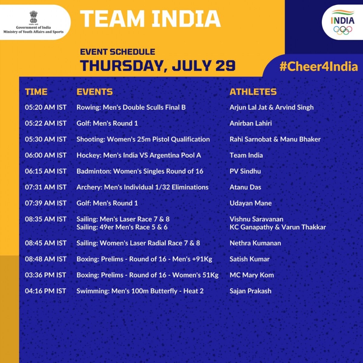 Here is India’s schedule for the Tokyo Olympics on day 7