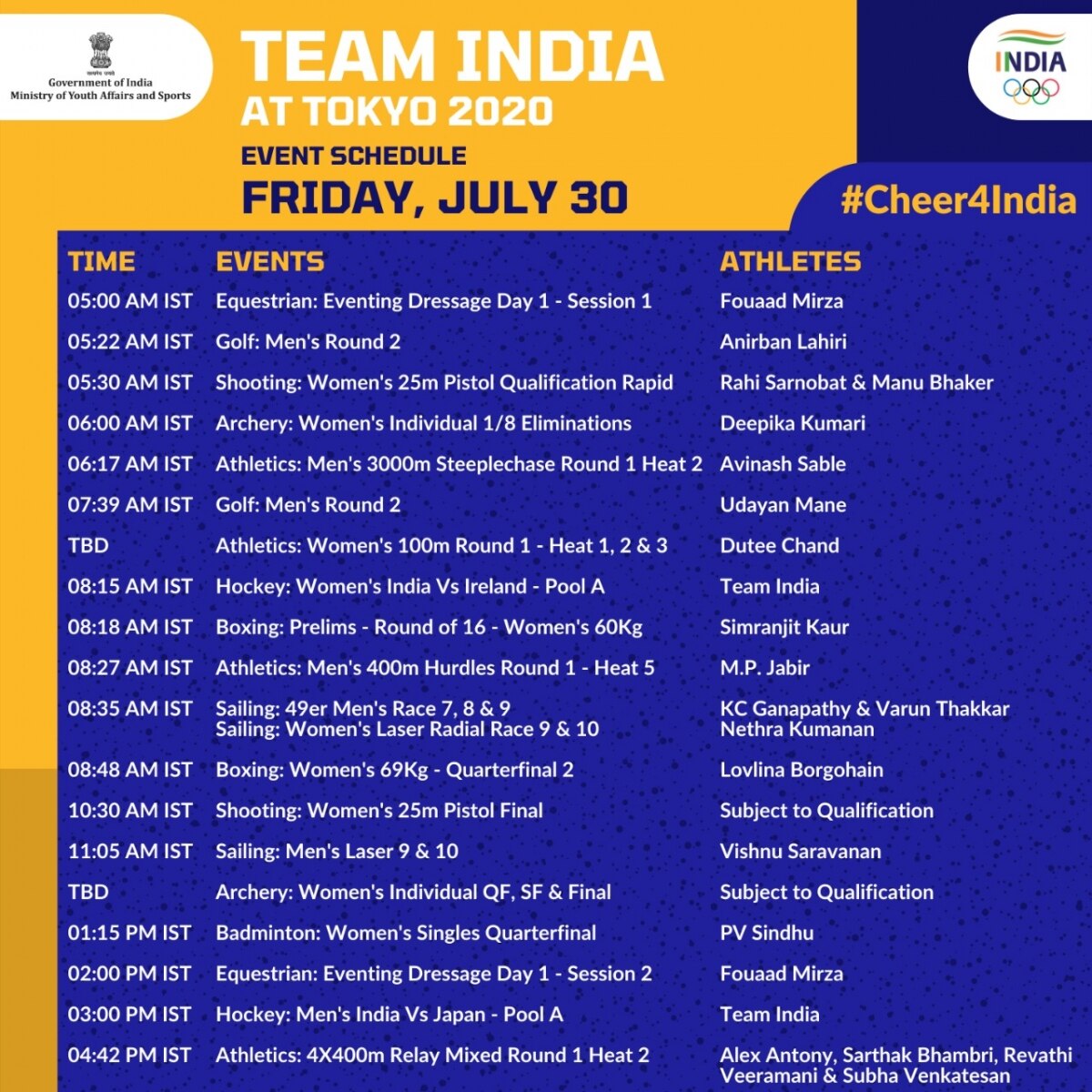Mixed 4×400 meter relay: 2nd run – India – 4:42 p.m. IST