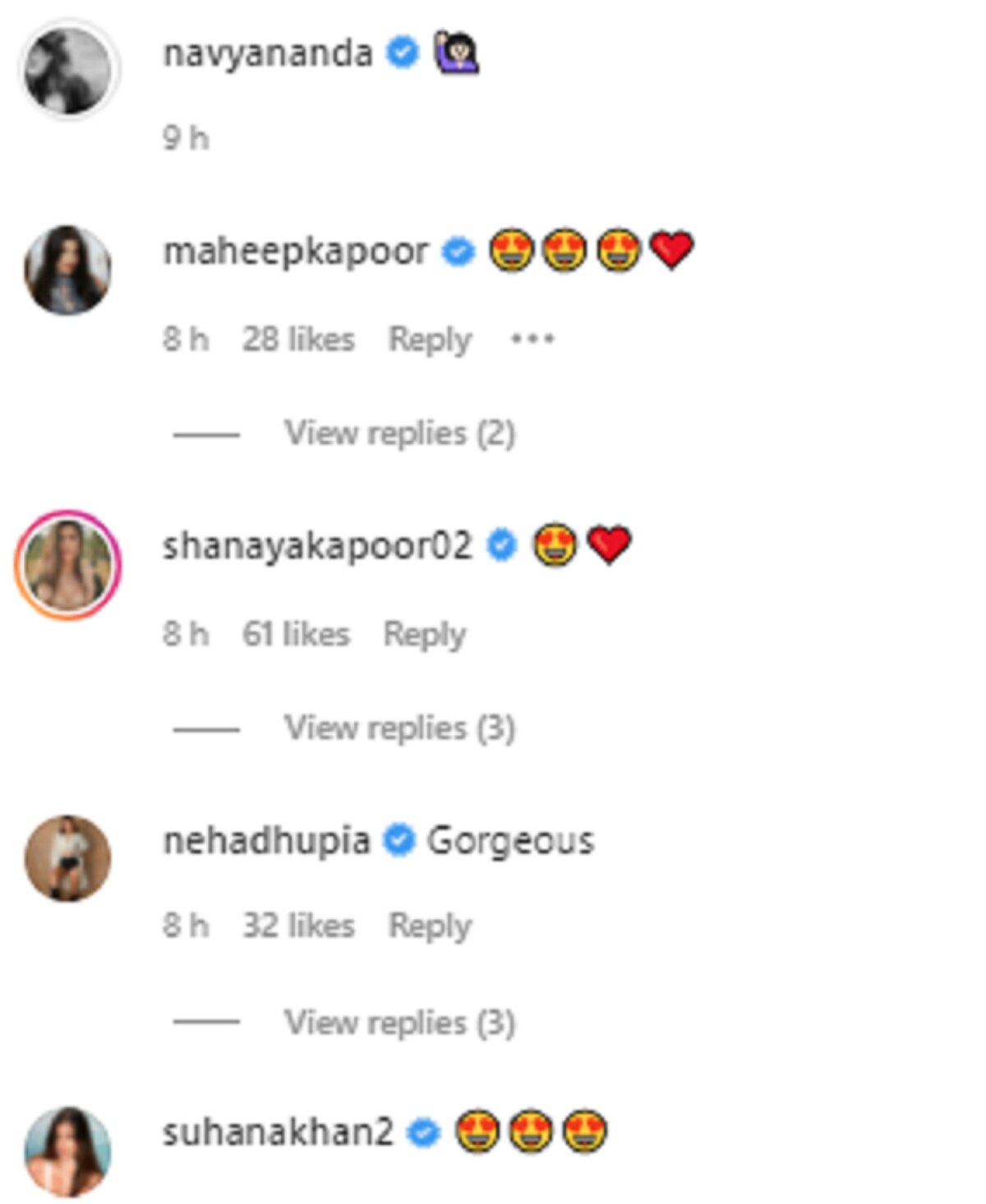Suhana Khan, Shanaya Kapoor, Neha Dhupia, Maheep Kapoor and others have commented on Navya’s post. See comments here: